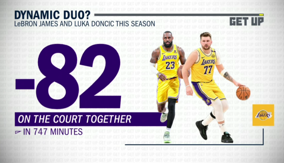 麦克马洪说道:“东契奇被交易到湖人已经一年,他和詹姆斯完全没打出化学反应。这才是大问题。詹姆斯和东契奇的组合非常别扭,两人同时在场时净负分达到 - 82,是湖人所有组合里最差的。”