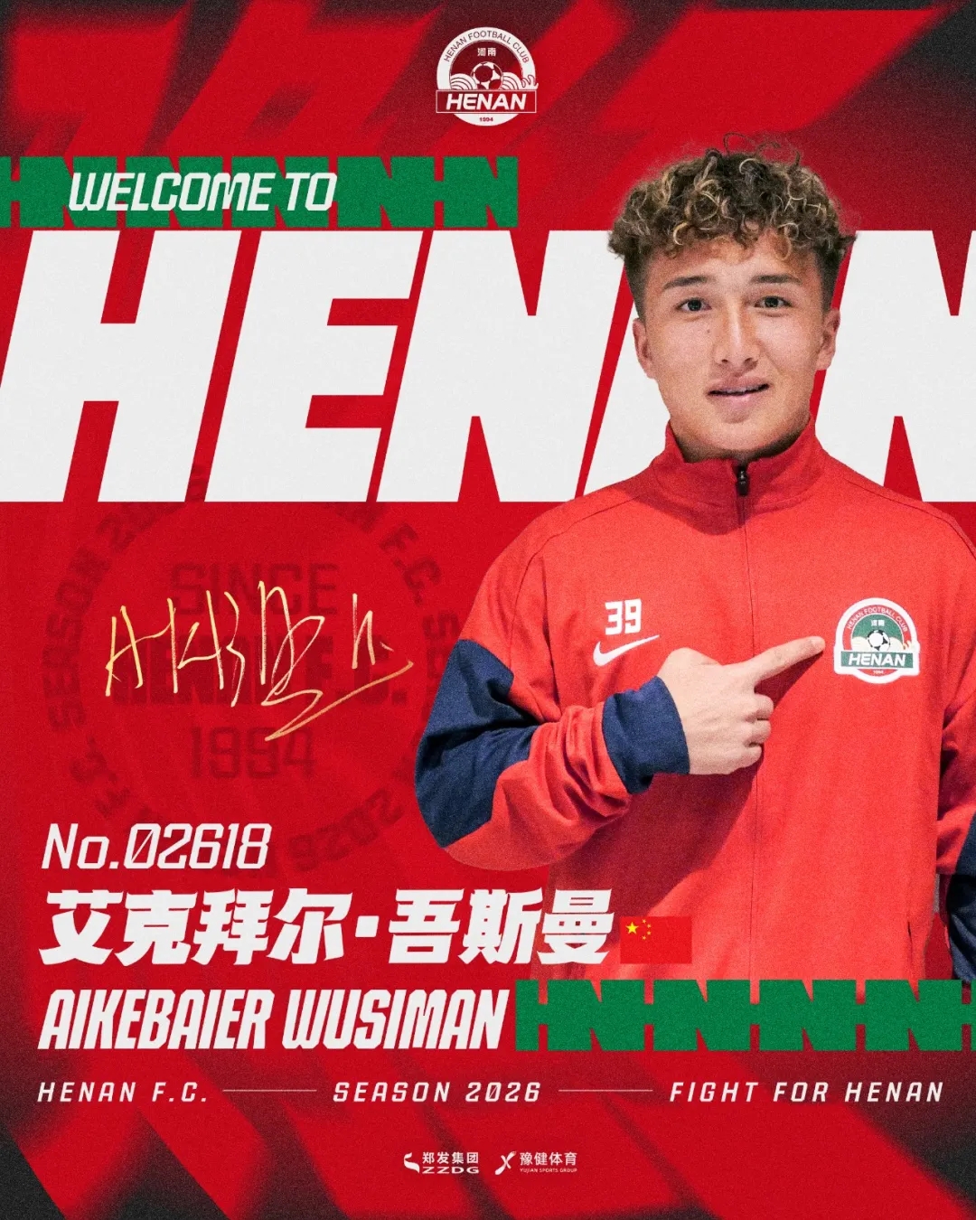 经与新疆足协及球员本人协商一致,球员艾克拜尔·吾斯曼转会加盟河南足球俱乐部,新赛季他将身披河南战袍,征战各项赛事。