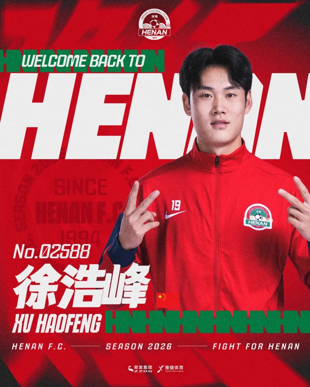 欢迎徐浩峰、刘家辉和王金帅回归河南足球俱乐部,期待你们与全体将士并肩作战,为河南足球拼下更多荣耀!